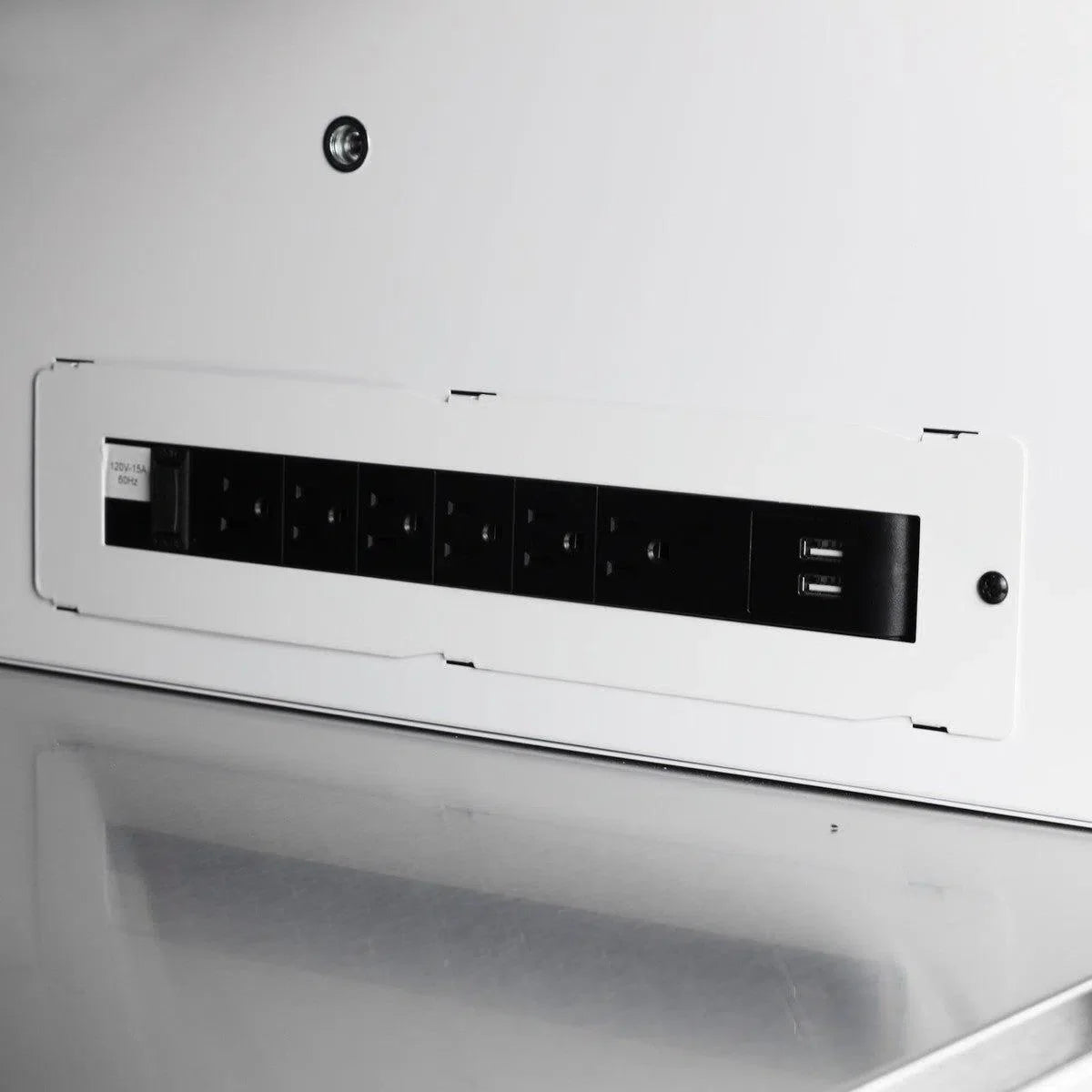A full-width square hole back panel provides customizable accessory mounting options (holders sold separately), allowing you to tailor your workstation to your workflow. The integrated 110V power strip with USB ports makes it easy to charge tools, devices, and accessories while keeping your workspace clutter-free.